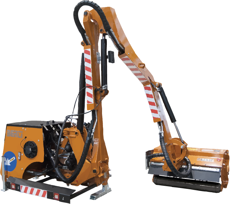 Questa versione è equipaggiata con un sistema flottante sul testa e sul primo braccio, un ammortizzatore di sicurezza con accumulatore di azoto e ritorno automatico e un doppio filtro olio per aspirazione e scarico. Inoltre, dispone di un secondo braccio con avanzamento idraulico e di sospensione oleopneumatica del primo braccio, oltre alla barra posteriore antiurto con luci LED per una maggiore protezione.