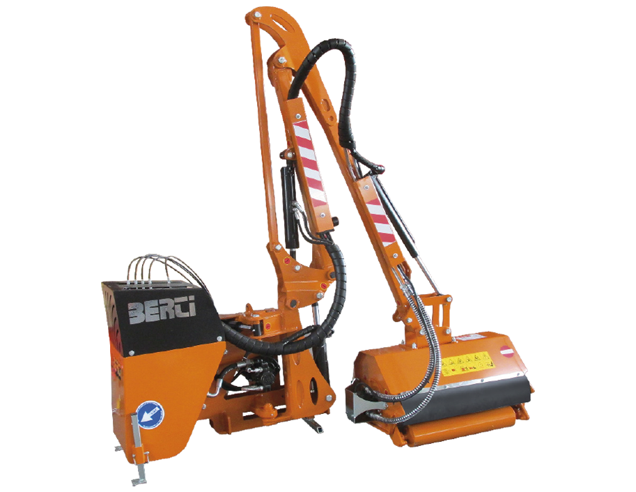 La struttura a parallelogramma garantisce grande precisione di movimento, mentre la rotazione di 90° dei braccipermette di operare agevolmente su scarpate, fossati e bordi strada. Il braccio integra un dispositivo di sicurezza idraulico con valvola regolabile e un sistema flottante sulla testata e sul primo braccio, assicurando stabilità e adattabilità alle irregolarità del terreno. È inoltre fornita di barra posteriore antiurto con luci LED.