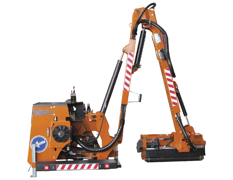 FB/T 660-730 è una decespugliatrice telescopica progettata per la gestione del verde, ideale per tagliare erba e arbusti fino a 5 cm di diametro, applicabile a trattori da 100 a 150 CV. La testata da 120 cm è dotata di trasmissione diretta e di un rotore elicoidale equipaggiato con coltelli snodati a Y, con possibilità di invertire il verso della rotazione. All’interno della testata è presente un rullo autopulente regolabile in altezza, mentre il cofano è smontabile. La macchina è protetta da coperture in gomma anteriori e posteriori, e la rotazione dei bracci raggiunge 100°.