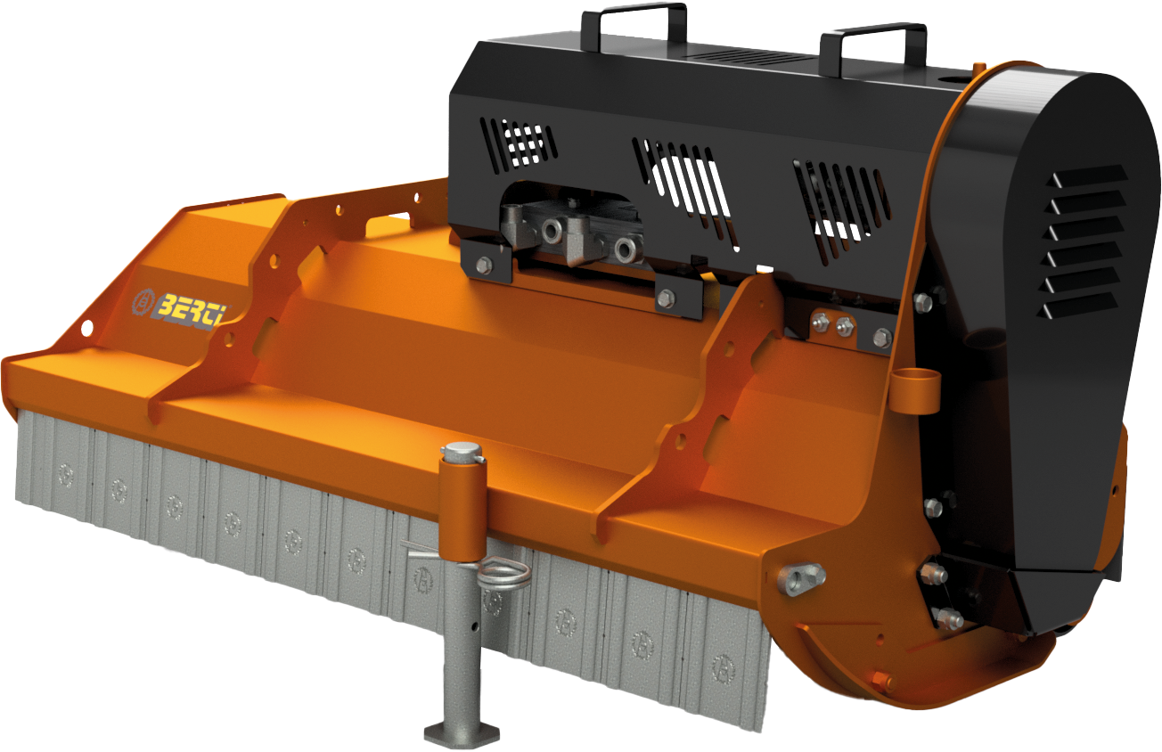 Il rotore è allestito con mazze tipo G e contromazze, assicurando un taglio efficace e uniforme anche in presenza di vegetazione fitta. Su richiesta è possibile prevedere attacco fisso o flottante, con o senza piastra liscia, soluzioni dedicate anche per pale gommate, oltre all’integrazione di ruote stabilizzatrici per migliorare la stabilità e il controllo durante il lavoro.